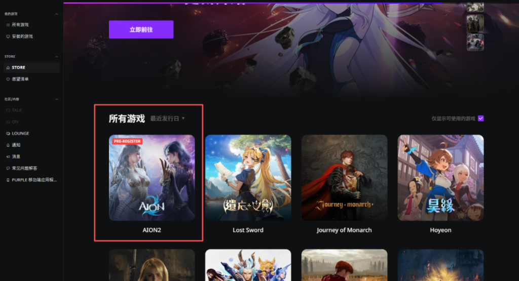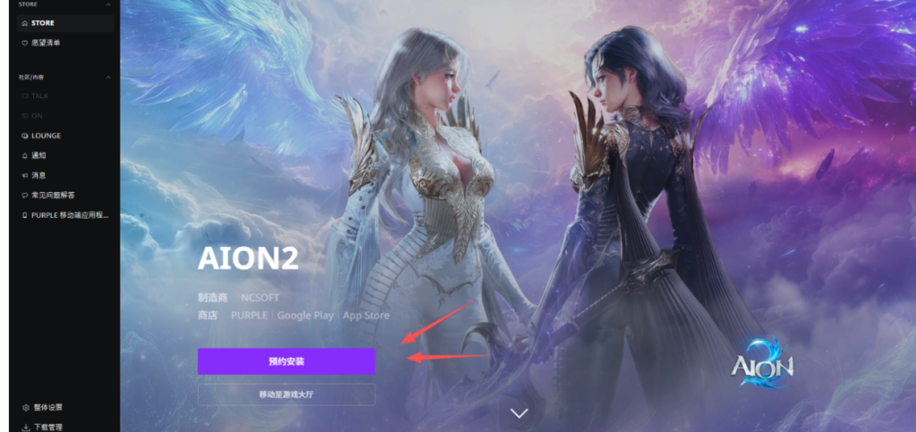 注册成功后回到启动器首页,此时就能看到游戏。点击紫色的预约安装按钮,等待游戏开放预下载,系统会自动完成下载。