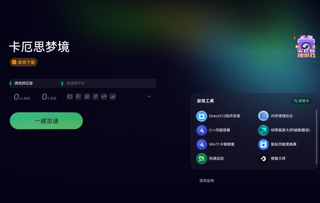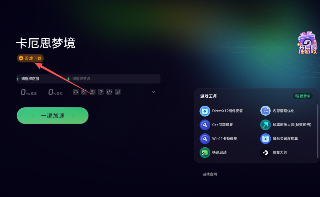 首先玩家们需要下载一个奇游加速工具。打开奇游后点击右上角的口令入口,输入QY666以获取使用时长,接着奇游内点击游戏下载。