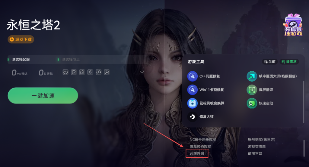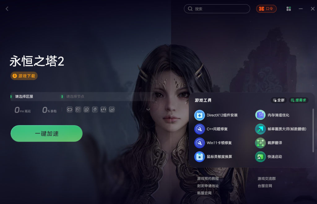 不过,不少朋友在注册Purple账号时遇到了麻烦,比如页面打不开、加载特别慢,或者干脆连不上服务器。这些网络问题不仅拖慢注册进度,有时候甚至会导致账号创建失败。打开奇游加速工具之后,可以在里面直接搜索“永恒之塔2”,选好游戏点“一键加速”就行。