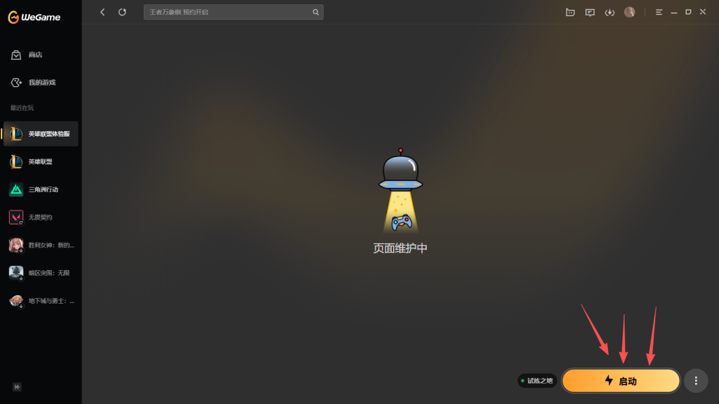 下载完成在wg登入你的账号,看到英雄联盟体验服试炼之地,点击启动即可进入游戏。