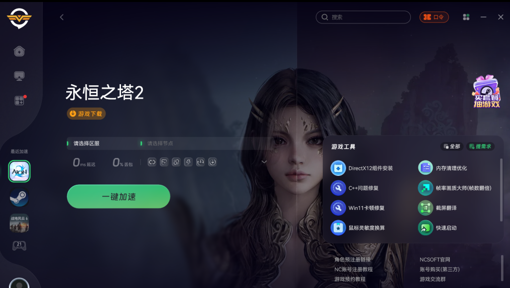 《永恒之塔 2》作为 NCsoft 打造的 MMORPG 革新作品,凭借升级后的画面引擎、更流畅的空中战斗及深度社交系统,让台服玩家开启了亚特雷亚大陆的全新冒险。但不少玩家在游戏中,尤其在深渊战场厮杀、大型副本挑战时,常遇网络延迟过高、服务器连接困难的问题,严重影响操作体验,以下三个方案可有效解决。