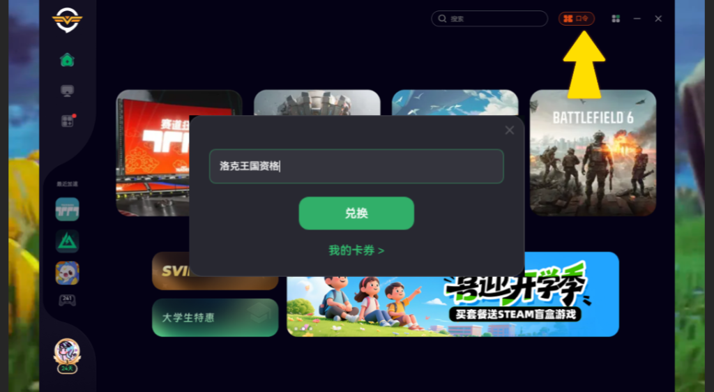 第三种方法,奇游现在还能抽取资格,打开奇游,点击口令输入【洛克王国资格】