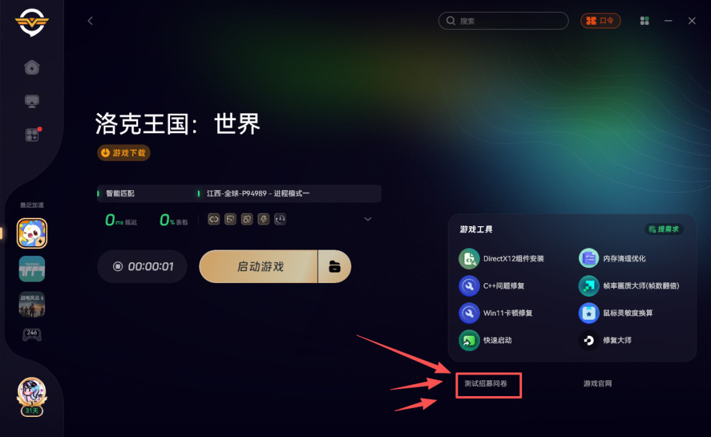 没拿到资格码的玩家也别急,还有第四种方法,我们加速《洛克王国世界》点击右侧的测试招募问卷