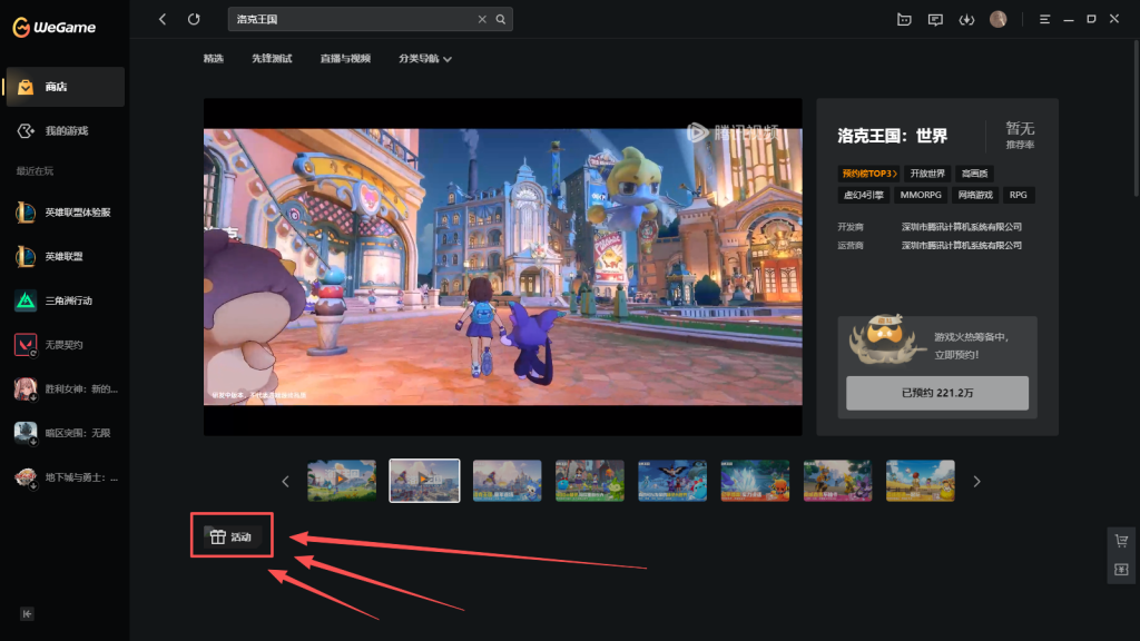 首先第一种wg活动,我们在wg搜索洛克王国,点击下方的活动