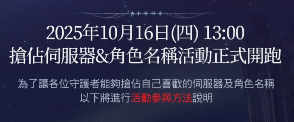 服务器与 ID 抢占要点:10 月 16 日 13:00 抢注正式启动,需注意一个账号仅能在一个服务器抢占一个角色名。