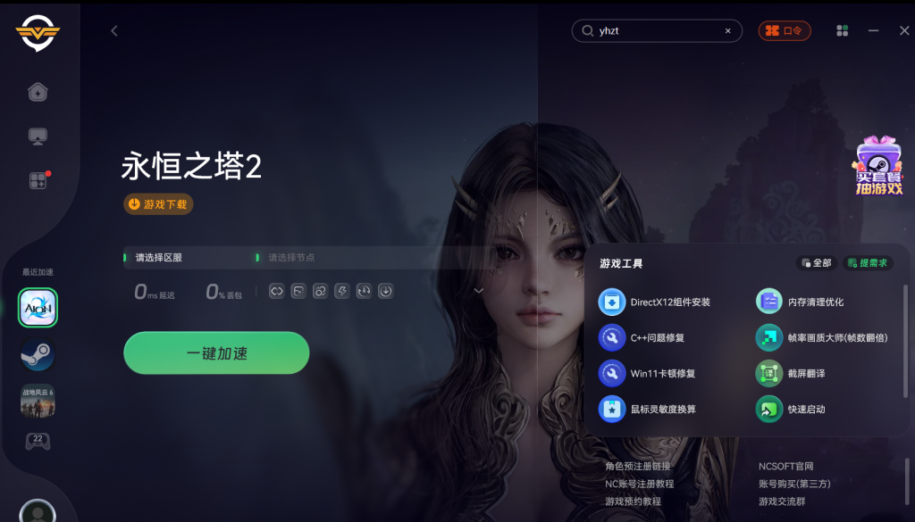 针对跨境网络问题,奇游加速器是直接有效的解决工具,其智能路由优化、专属通道技术能显著提升下载速度。操作步骤如下:先下载安装奇游加速器,打开后在搜索栏输入 “永恒之塔 2”,选择对应服务器进行加速;期间输入口令 “qy666”,可免费领取 3 天加速时长,保障加速效果。