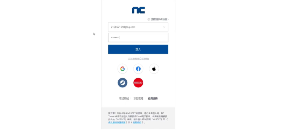 之后,再次点击右上角的官方网站选项,进入官网主界面。在登录区域,将国家地区选定为“台湾”,随后登录自己的游戏账号。若尚未拥有账号,后续会有专门的注册教程说明。