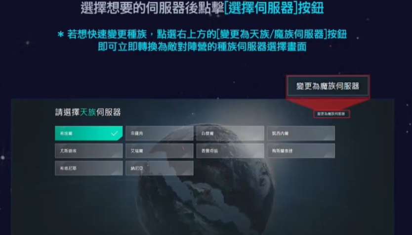 选定种族后,接着选择服务器。若后续想更换种族或服务器,可在右上角找到切换服务器的选项。选择完毕后注册游戏角色名,完成角色预创建,此次抢占名字的操作便基本完成了。