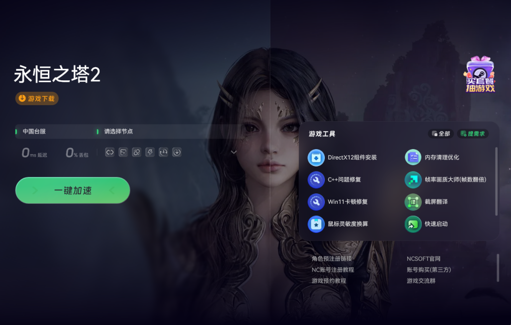 首需准备好奇游加速工具,在奇游右上角的指定位置输入神秘代码QY666,获取加速时长,为后续操作提供稳定网络支持。获取时长后,在加速工具中搜索并选定永恒之塔2进行加速。