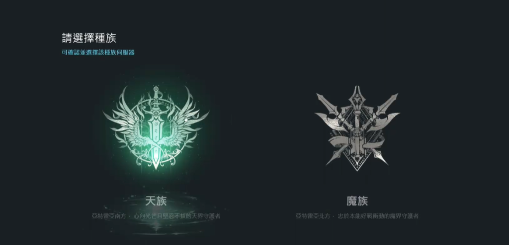 登录账号后,点击开始抢占按钮。接下来就是选择种族,这里有个关键点需要注意,魔族和天族的服务器是相互独立的。所以如果你打算和朋友一起玩,一定要选择同一个种族,这样才能在游戏里并肩作战。