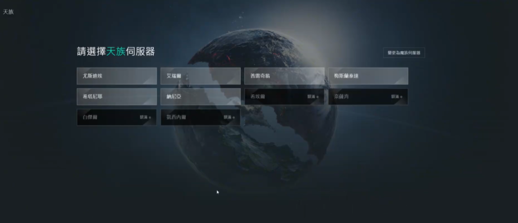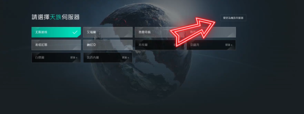 选定种族后就是选择服务器。在页面右上角,还能切换到另一个种族的服务器,方便大家根据自身需求进行选择。