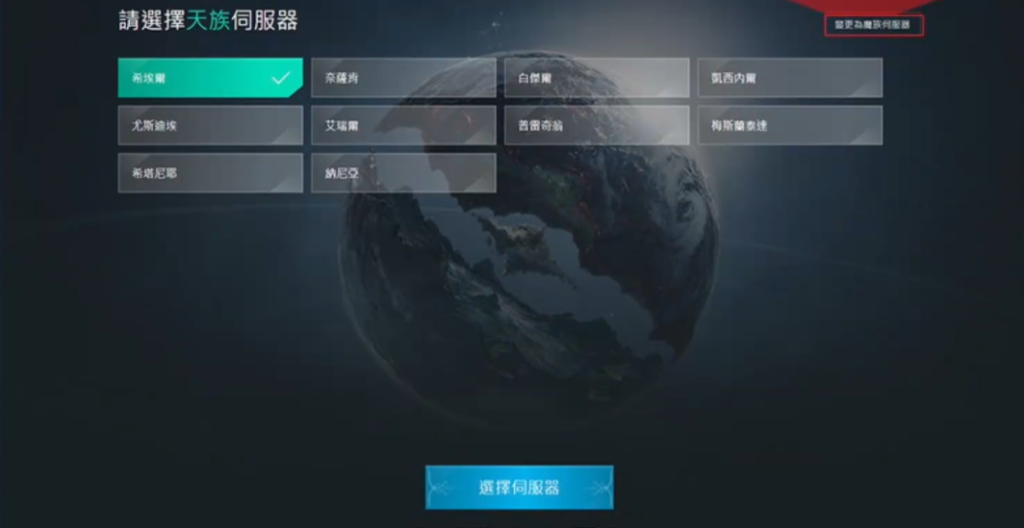 加速后奇游的游戏下载按钮,下载并安装游戏启动器。安装完成后,启动平台,点击全球,选择中国台湾。