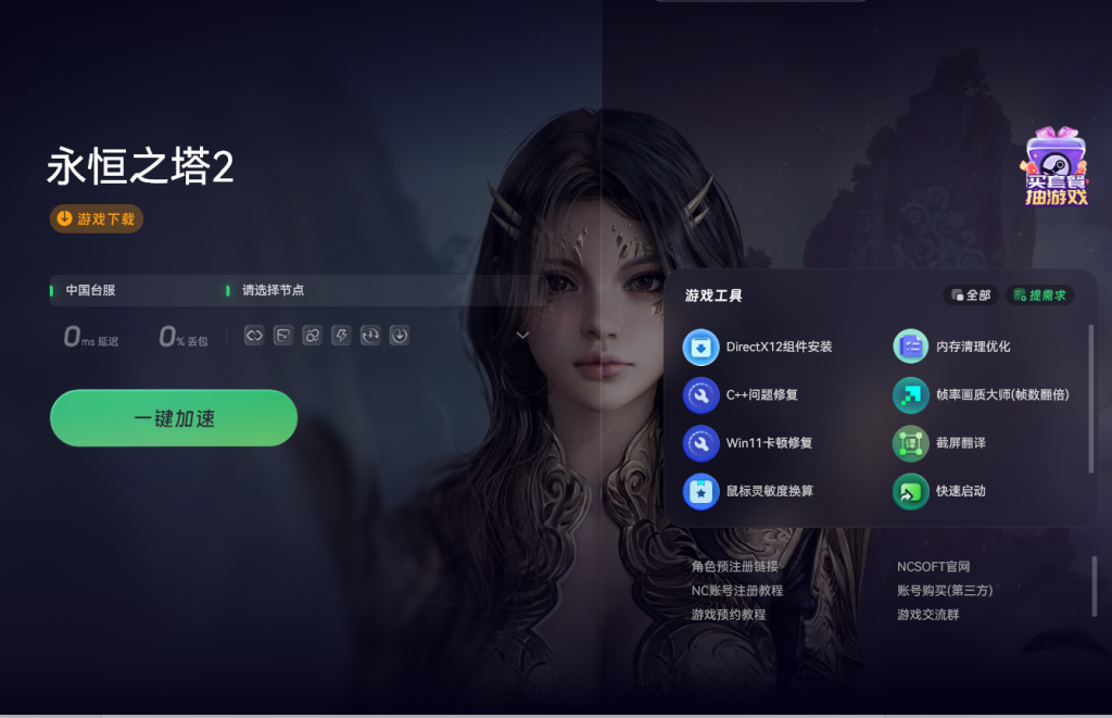 国内玩家直连外服时,常因跨境网络波动,出现官网加载失败、预创建卡顿等问题。建议使用奇游加速工具,搜索永恒之塔,选择台服加速,以保证官网访问和角色创建全程稳定,避免断连。
