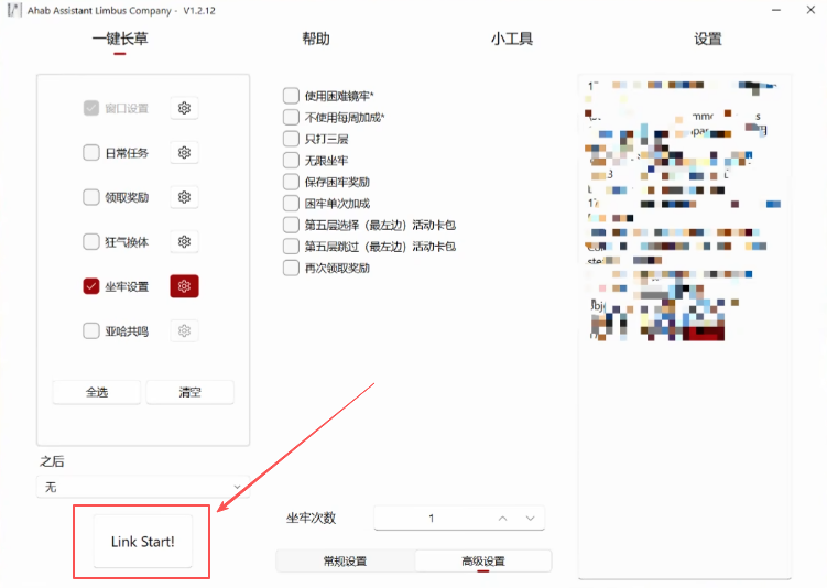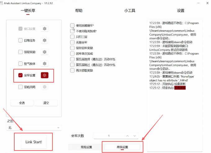 比如说你想自动刷“坐牢”任务,那就先在工具里找到“坐牢设置”,进入“高级设置”勾上需要的选项,最后再按“Link Star”确认。