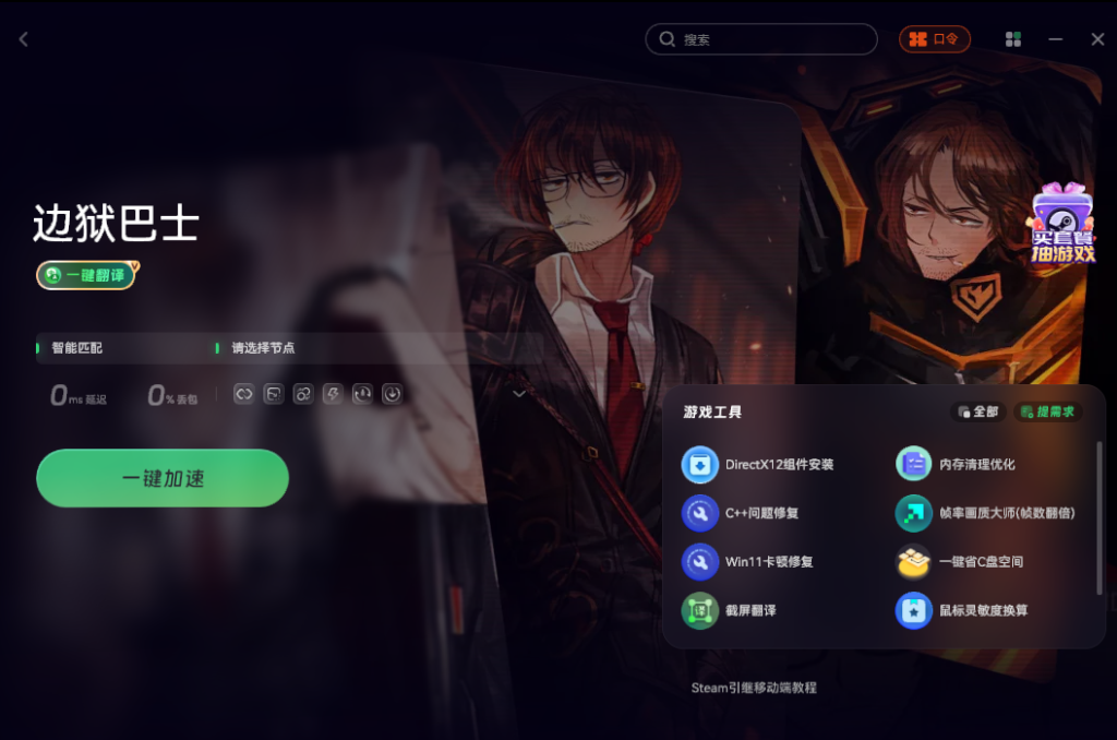 如果你也感兴趣,下面教你怎么获取和使用。首先,你需要准备一个奇游加速工具。打开之后搜索“边狱巴士”,选择一键加速。