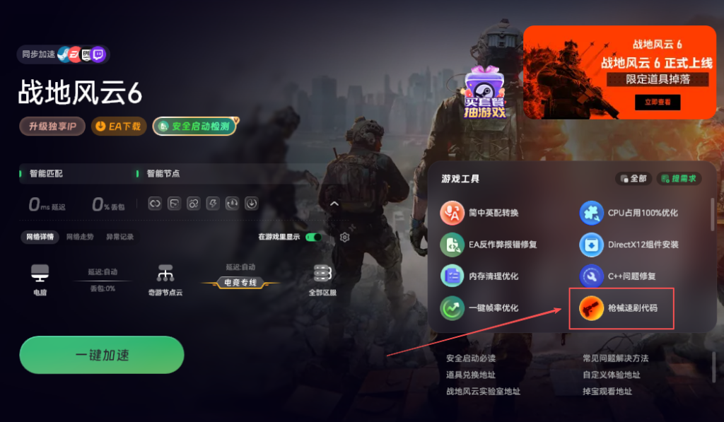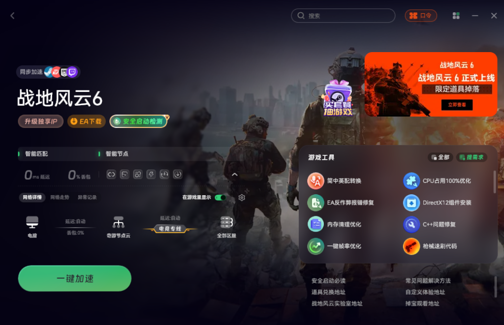 首先,你可以试试用奇游加速工具来处理这个问题。打开奇游之后,在搜索框里输入“战地6”,然后选一个南非的节点,点一下加速。一般加速成功之后,就能绕开服务器配额限制,正常进入游戏了。