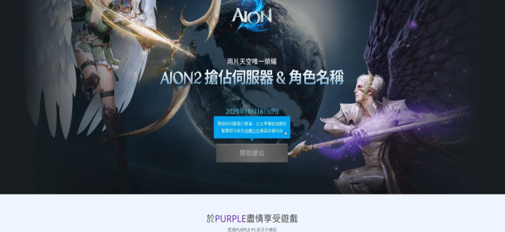 此时就能看到抢注按钮。待一点钟活动开启,点击开始抢占。接着,要选择自己的种族,天族和魔族分别对应不同服务器,且除特定玩法外,两个服务器不互通,所以服务器选择至关重要。