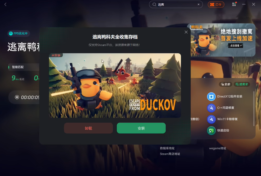 对于刚接触这款游戏的新玩家,首先需要启动一次游戏,然后正常退出。接下来打开提前准备好的奇游加速工具,在搜索框中输入逃离鸭科夫,对其进行加速。如果你的加速时长不足,可在加速工具右上角输入口令“QY666”,最高可获取 720 小时的加速时长,以此确保后续操作的流畅性。