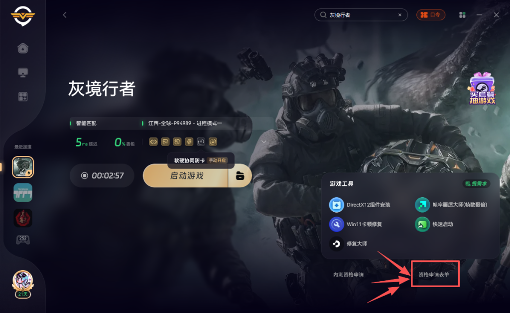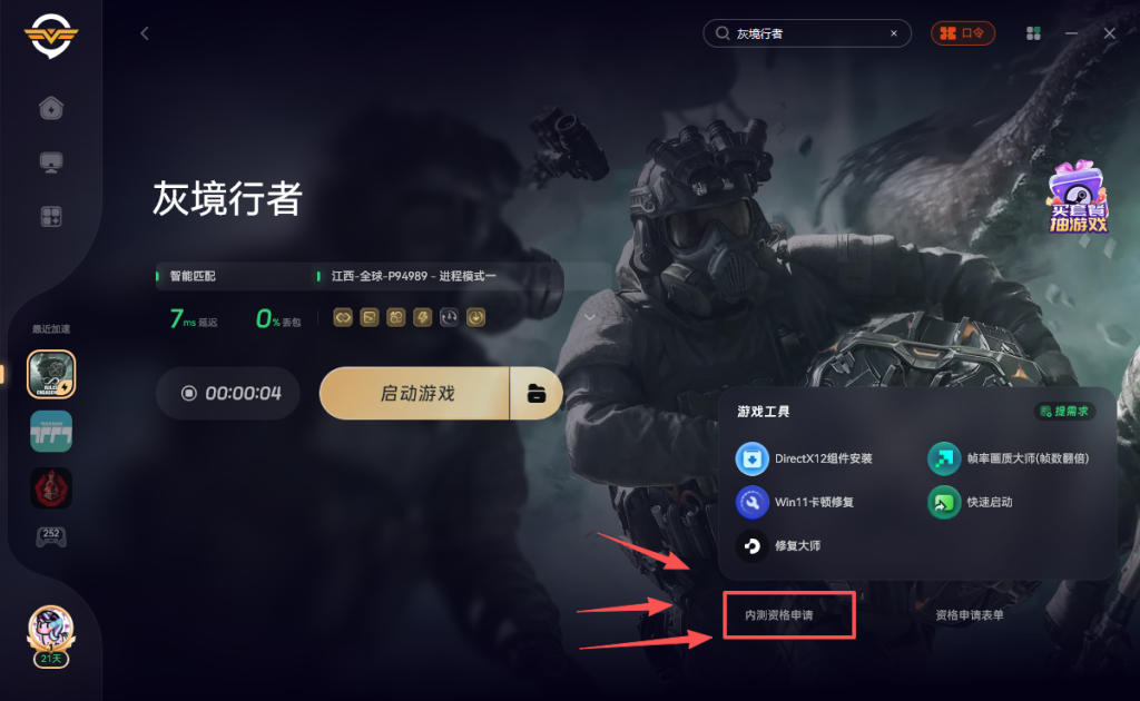 之后我们加速《灰境行者》点击右侧的内测资格申请进入官网