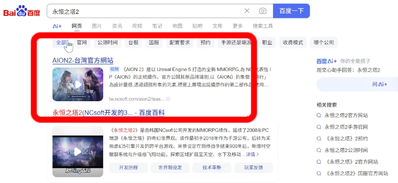 先用百度搜“永恒之塔二”,一般第一个结果就是官网。