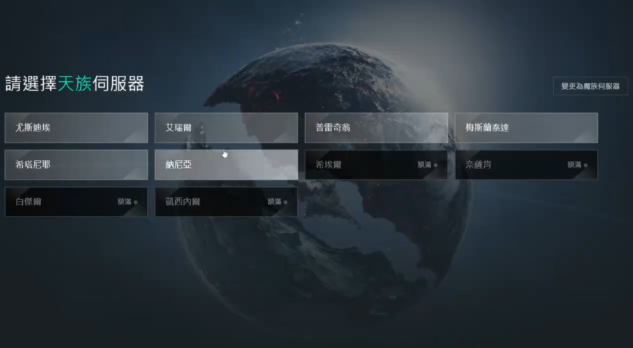 然后就是选服务器了——记得选“天使”种族对应的区服。要注意,有些服务器已经显示满员了,所以动作一定要快,不然心仪的服务器可能就没了。