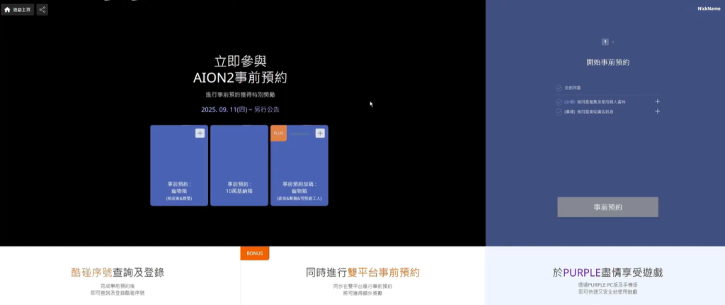 我们以台服为例进入服务器后,先随意选择一个阵营,接着在页面左侧找到事前预约的入口。点击进入预约页面,在右上角选择免费注册账号。