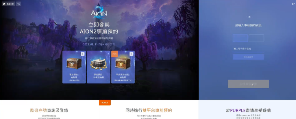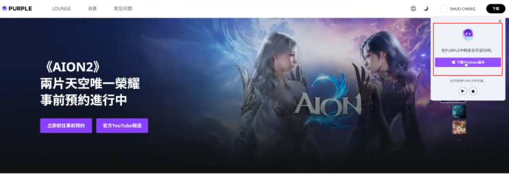 接下来在预约页面往下拉,找到下载purple启动器的按钮。因为游戏需要通过purple平台来运行,所以必须先安装这个启动器。安装完成后登录刚才注册的账号,等游戏正式开服,就可以直接进入游戏体验了。