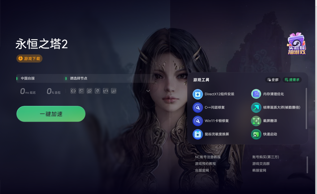 打开加速工具后在界面右侧可以找到韩服和台服的入口,选择你想要体验的服务器即可,这两个服务器的操作流程大致相同。