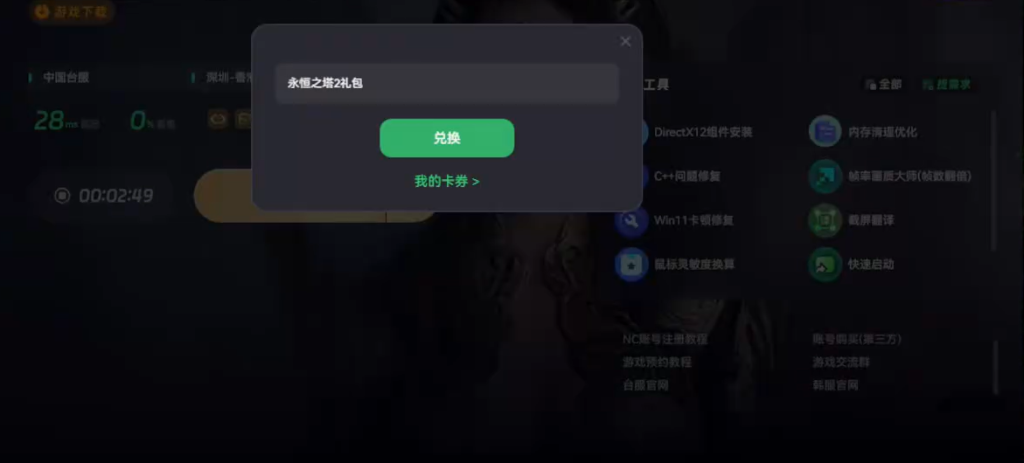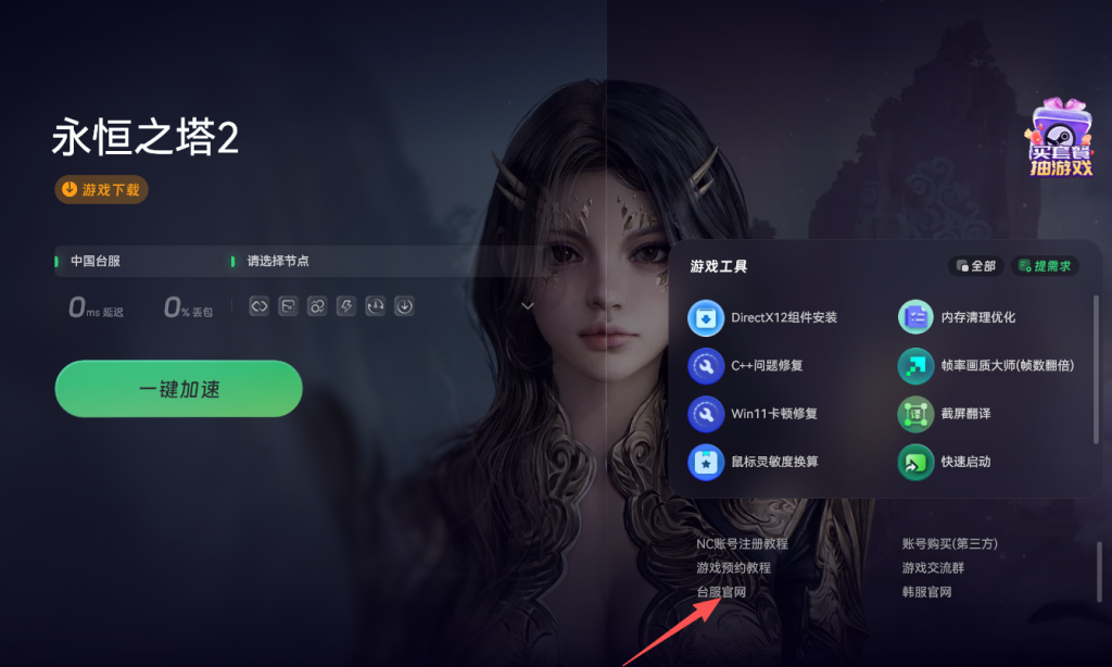 对于尚未注册账号的玩家,有一个便捷的方法。在奇游加速工具界面的右上角,输入永恒之塔2礼包,按照提示操作就能获得一个带有预约奖励的台服账号。使用这个账号,便可以畅玩永恒之塔2的台服。