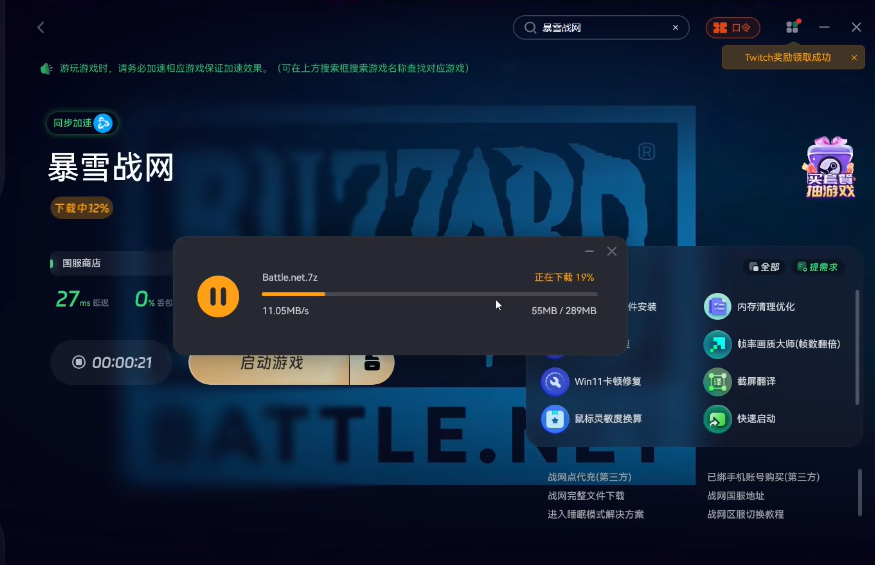 加速完成后在页面中找到战网下载按钮并点击,随后点击确定,静静等待下载与解压完成。安装完毕后,打开客户端。
