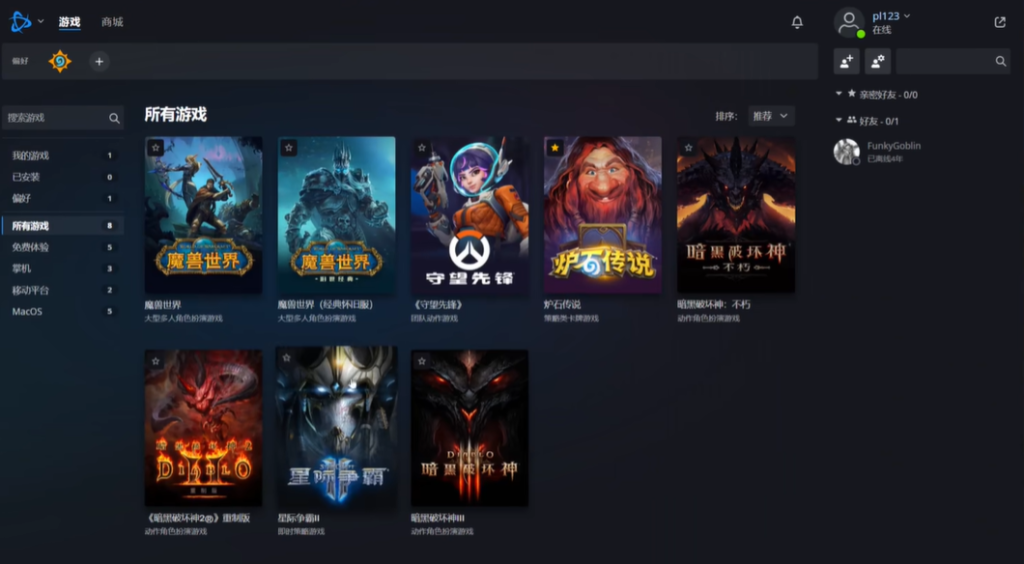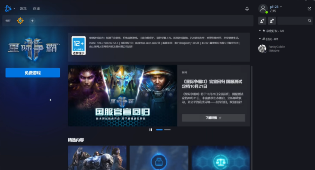 完成账号关联后登录暴雪客户端。进入客户端主界面,点击游戏按钮,再选择所有游戏。在众多游戏列表中,找到星际争霸2,点击免费游戏选项,开始下载。