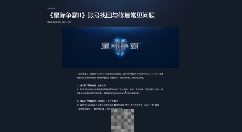 如果遇到忘记账号、账号遗失或实名认证等问题,可前往星际争霸国服官网,里面有详细的账号找回与修复教程。