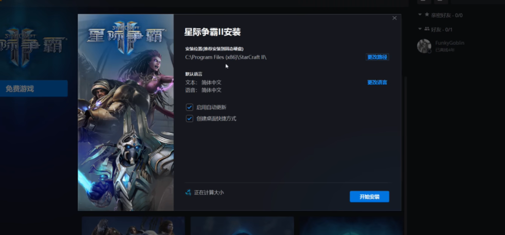 登录暴雪客户端后就能下载游戏。进入客户端,在游戏界面所有游戏中能找到星际争霸2,点击免费游戏开始下载。