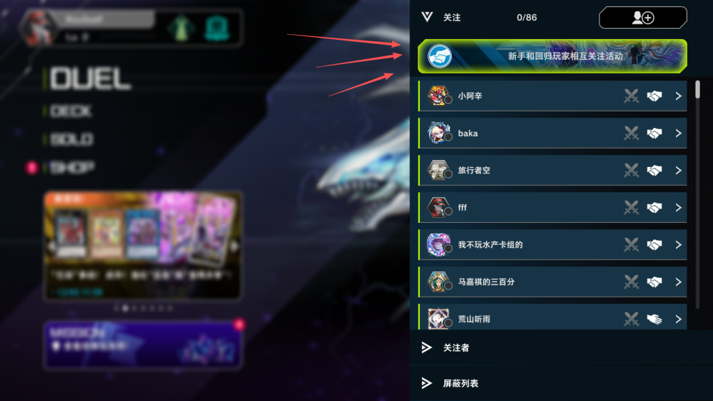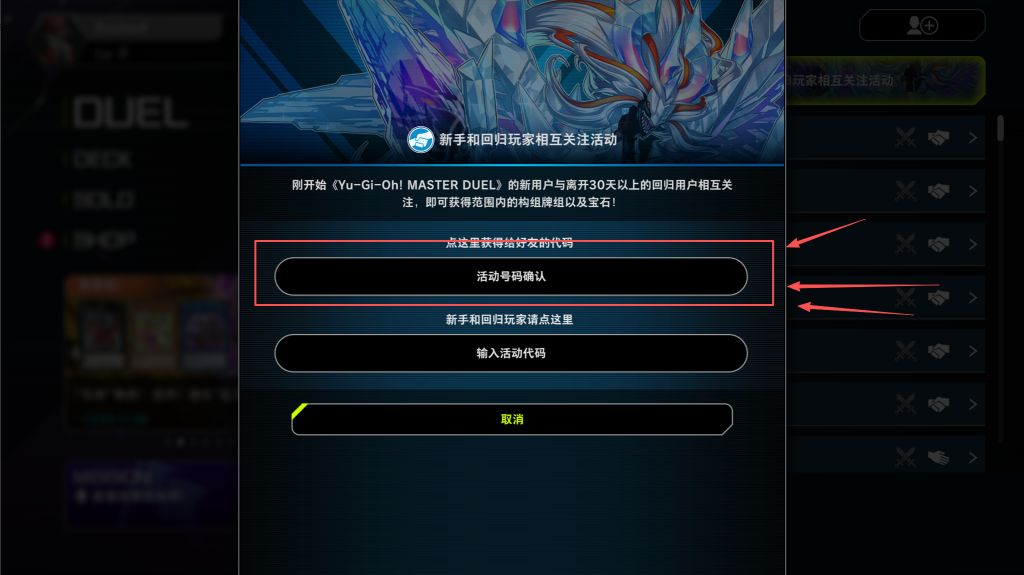 一键拉满《游戏王大师决斗》新手和回归玩家相互关注活动所有奖励。