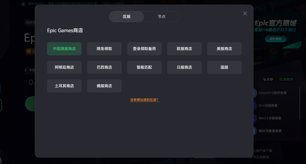 解决方法二:使用奇游加速工具更换区服加速