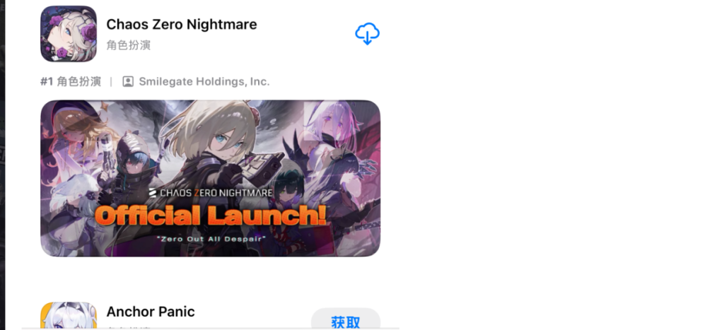 iOS端用户同样先打开奇游手游加速,搜索卡厄思梦境。然后在App Store登录外区账号,搜索游戏英文名Chaos Zero Nightmare,点击获取下载游戏。