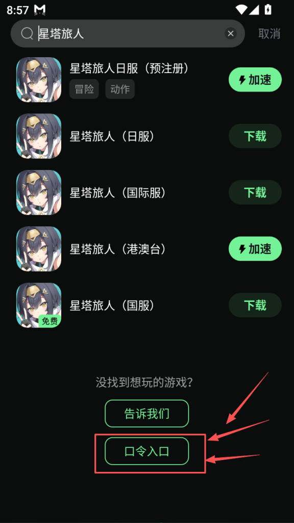 进入后登入你的账号,搜索《星塔旅人》点击口令入口