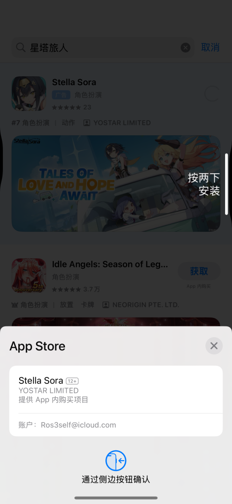 然后在 app store 登入外区账号,搜索游戏名《Stella sora》点击获取即可下载游戏,剩下的步骤和安卓一样。
