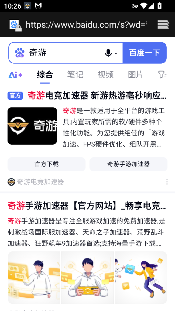 首先安卓端,奇游支持一键下载,我们网页搜索《奇游》