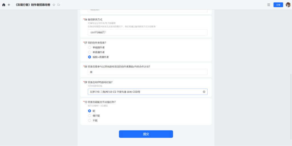 第二种方法同样是使用奇游加速工具。点击奇游右侧的资格申请表单按钮,进入创作者招募问卷页面。