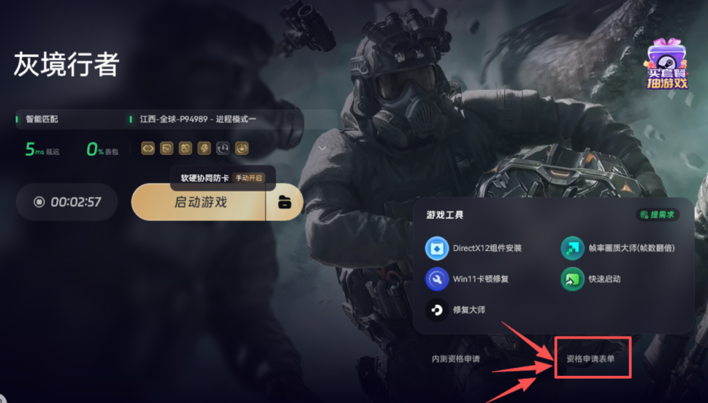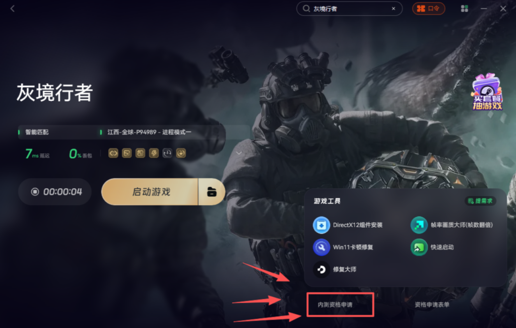 关于测试资格获取,有两种可行途径。第一种方法,借助奇游加速工具来操作。打开奇游搜索加速灰境行者,点击右侧的内测资格申请按钮,进入游戏官网。