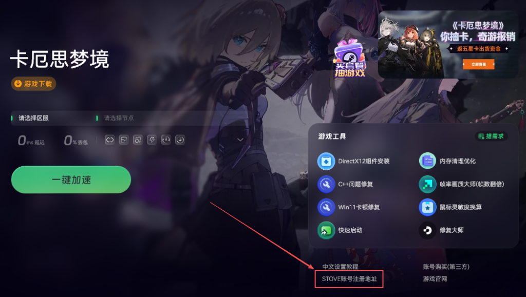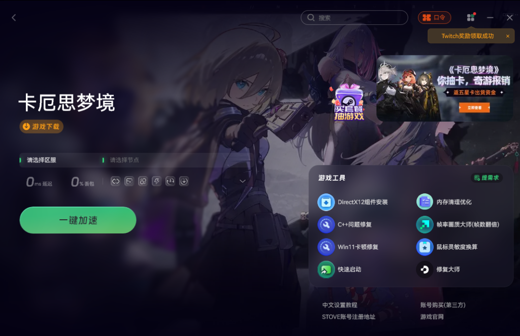 打开奇游加速工具,加速《卡厄思梦境》之后再打开注册页面,就基本顺畅了。