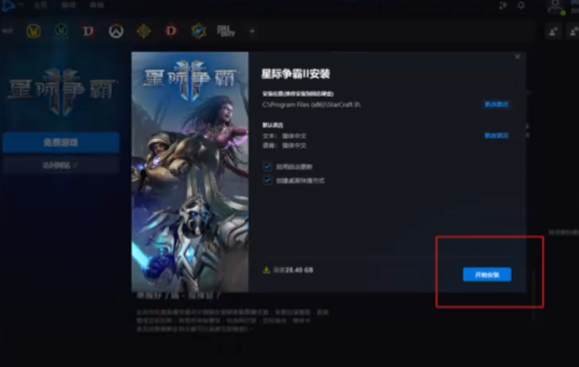 等账号一切都处理好之后,登录你的战网客户端,在游戏列表里找到“所有游戏”,应该就能看到《星际争霸二》了。直接点击“免费游戏”按钮就能开始下载。