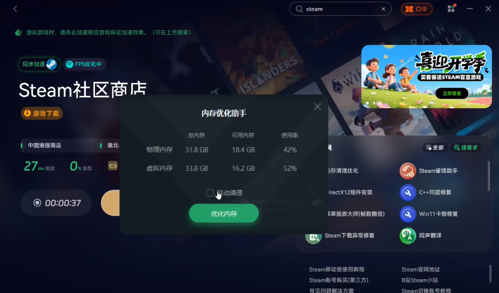 电脑内存不足或存在内存泄漏等问题,同样可能导致游戏无法启动。为了解决这一问题,玩家们可以使用奇游提供的内存清理优化工具。通过勾选相关选项,工具能自动清理电脑内存中的冗余数据,释放更多内存空间,从而确保游戏能够顺利启动。