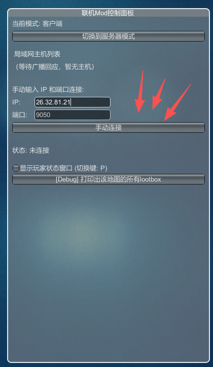 好友粘贴进IP里面,不要修改端口,之后点击手动连接