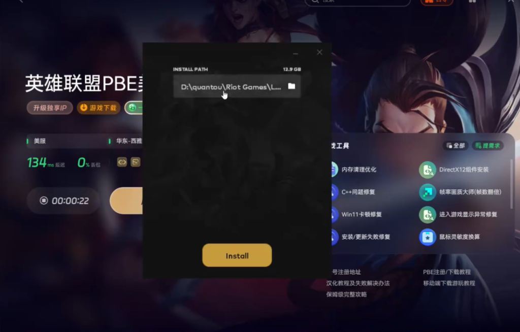 加速完成后点击页面上方的游戏下载选项,下载完成后,按照提示立即安装拳头客户端。
