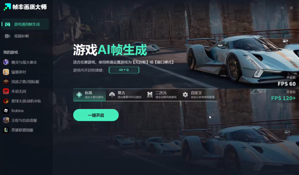 若玩家在游戏中遇到无法开启帧生成的问题,可借助奇游内置的帧率画质大师功能。选择游戏通用帧生成模式,并设定为标准选项,点击一键开启,即可有效解决帧生成难题。