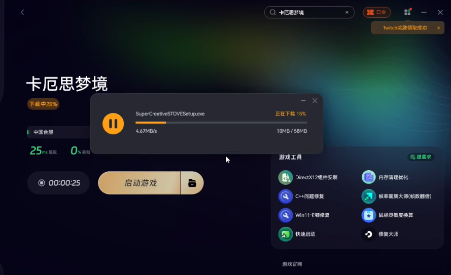 加速操作完成后点击加速器页面上的游戏下载工具,在弹出的提示框中点击确定,即可开始下载游戏。