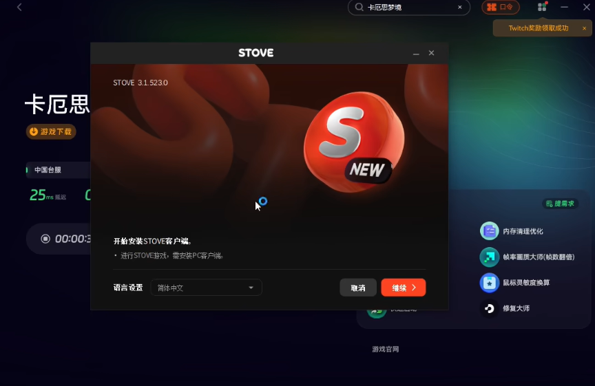 下载完成后,点击立即安装,奇游加速器会自动启动游戏官方启动器的安装包。