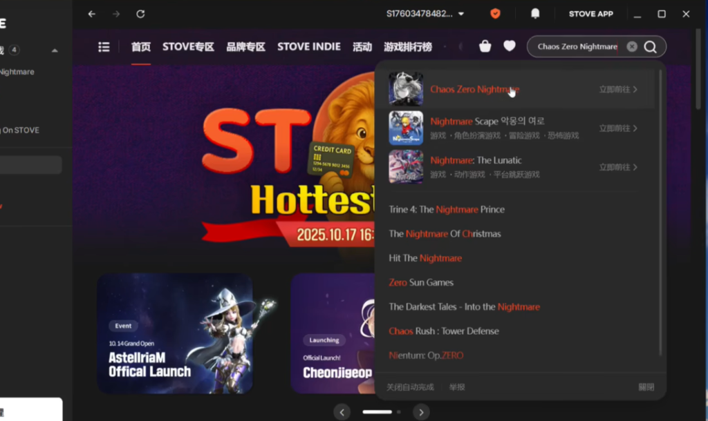 登录客户端后,在商店页面搜索Chaos ZeroNightmare,然后点击立即前往,进入相关网页。在网页中找到PC端事前下载选项并点击,接着再点击打开。完成这些操作后,回到stove平台,就可以下载游戏了。